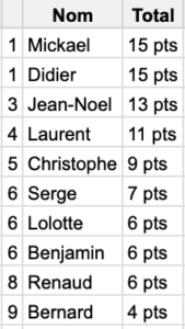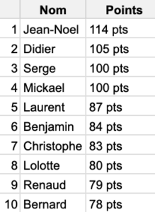 Classement au 20 octobre.