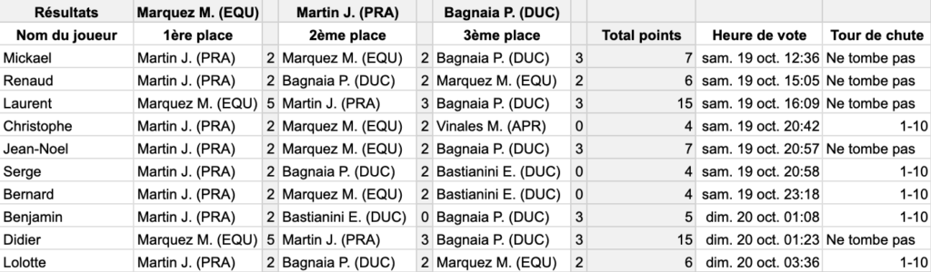 GP du Mans – résultats