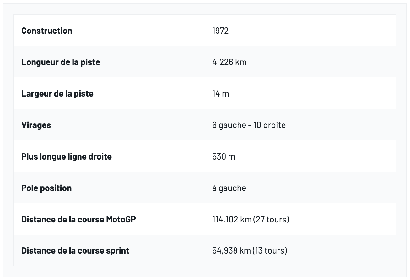 Souvent critiquée pour son grip plutôt faible, conséquence directe de la proximité immédiate des places et du sable apporté par le vent, la piste a été resurfacée il y a trois ans et convient désormais bien mieux aux pilotes sur ce point.