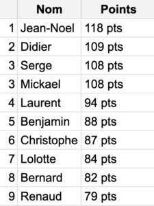 Classement au 27 octobre.