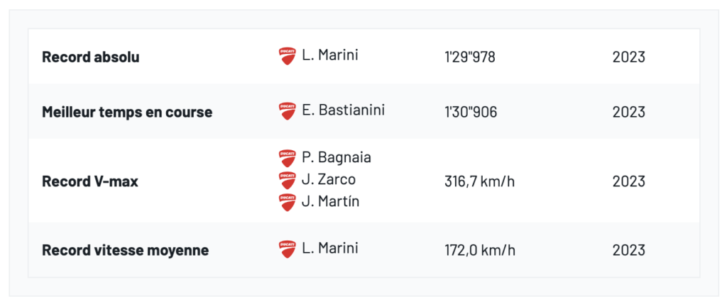 Records de piste :