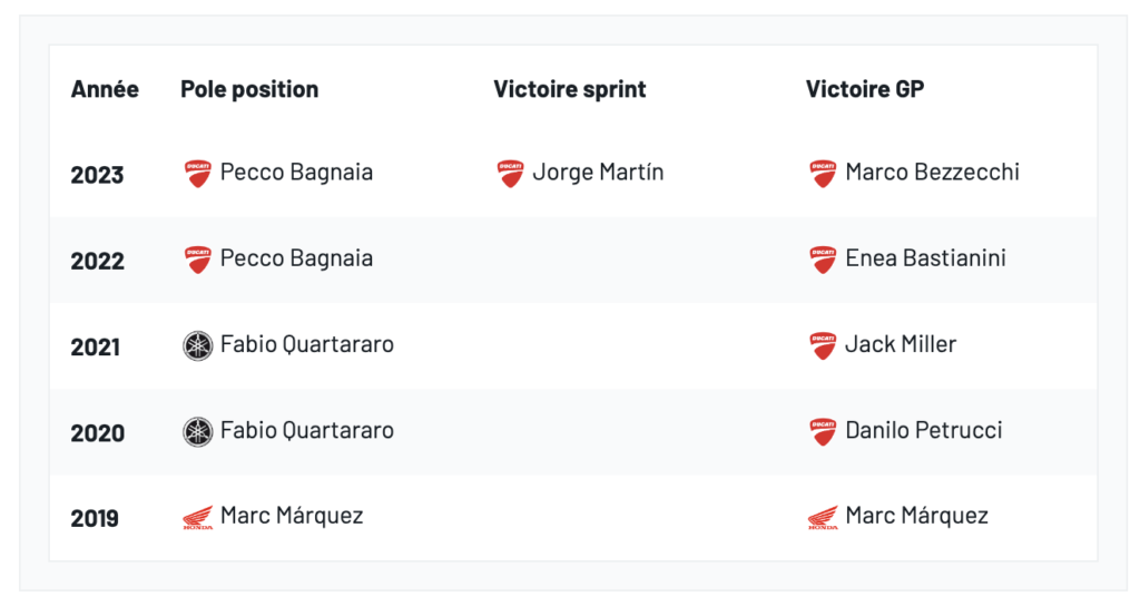 Les amateurs de spectacle sont généralement servis avec cette épreuve, souvent perturbée par la météo, comme en 2021 où les pilotes ont dû procéder à un changement de moto rocambolesque tandis que le circuit était balayé par des bourrasques de vent et des averses. Johann Zarco et Fabio Quartararo y avaient alors décroché un double podium français, mais le public les attend encore sur la plus haute marche pour les fêter comme il se doit. Si les performances générales de leur moto respective font craindre que ça ne soit pas le cas cette année encore, Le Mans réserve souvent de nombreuses surprises !