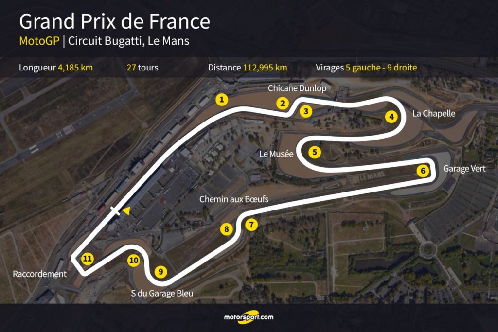 Construit en 1965 et hôte de son premier Grand Prix de France en 1969, le circuit Bugatti du Mans accueille l’élite mondiale sans interruption depuis 2000, après une parenthèse (1996-1999) consécutive au grave accident d’Alberto Puig.