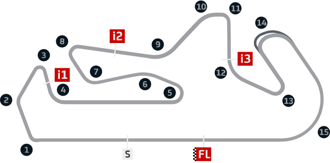 Au cœur des collines, la piste de Portimão se distingue notamment par son dénivelé, particulièrement impressionnant par endroits, mais aussi plusieurs freinages très appuyés. Ces deux paramètres se mixent dans la ligne droite de près d’un kilomètre, véritable toboggan qui mène les pilotes au virage 1, le tout avec des pointes à 350 km/h environ pour les plus rapides, pour ensuite aborder la plus grosse décélération du circuit.